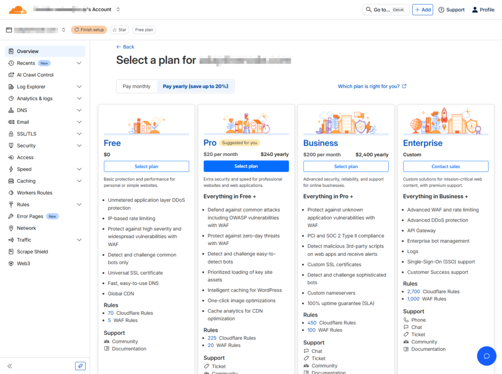 プランをどれにするか聞かれるので、Free を選択する。