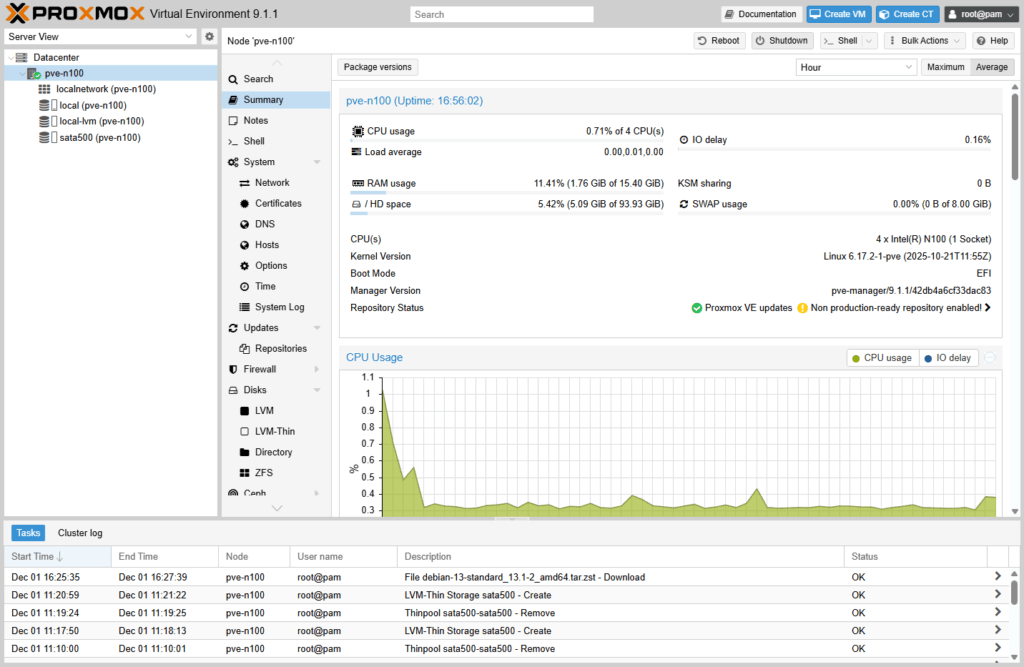 root@pve-n100:~# pveam download local debian-13-standard_13.1-2_amd64.tar.zst
